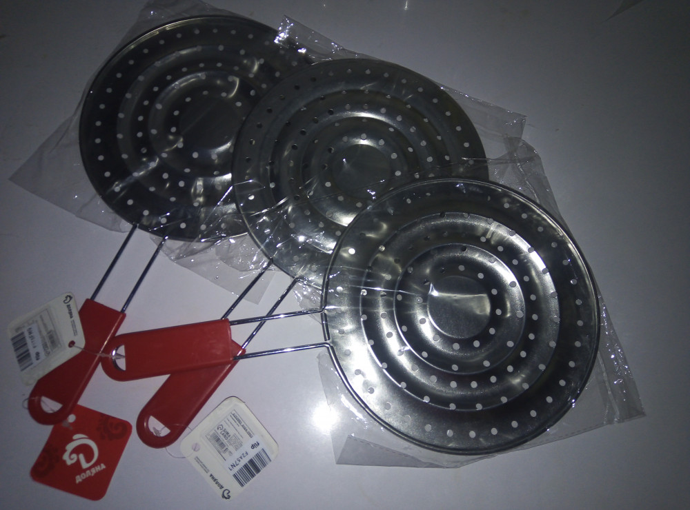 Очень понравился рассекатель, пища готовится на более равномерном огне, намного лучше. Сначала купила 1,пользовалась где-то год, теперь приобрела сразу три, себе и в подарок. Металл от огня чернеет, но в остальном всё очень удобно и хорошо. Ручка удобная, достаточно длинная, не нагревается.