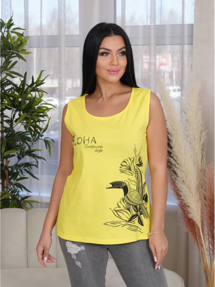 Майка понравилась,качественно сшита,хлопок,яркая,приятна к телу,на 46 заказала 48 размер.