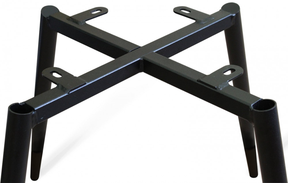 • прочность и долговечность. Ножки каркаса выполнены из металлической трубы диаметром 38 мм. Верхняя крестовина каркаса с приварными фланцами выполнена из квадратной трубы 15×15 мм. Каркас не разборный и окрашен порошковой краской, устойчивой к механическому воздействию.