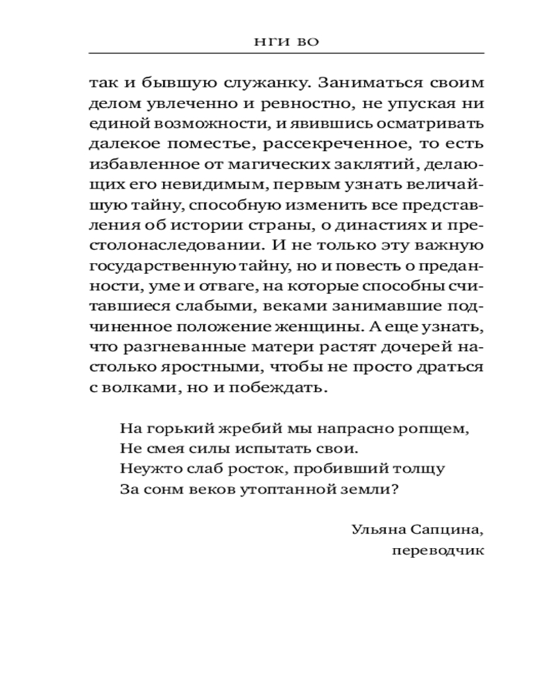 Книга тонкая страницы 157. Внутренние страницы довольно плотные , шрифты большие. Сюжет: рассказ идёт о Императрице Севера как она попала на юг и ее жизнь. Так же ей служит служанка по имени Крольчиха