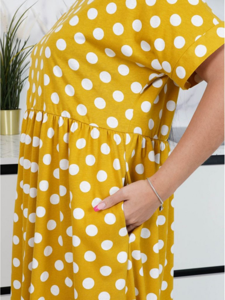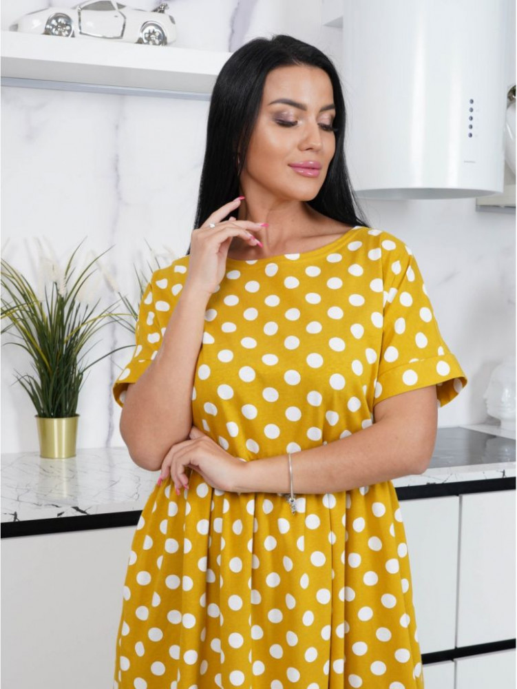 Платьице очень милое. Полностью соответствует описанию: материал кулирка - в меру тонкий, гладкий трикотаж. Пошив аккуратный. Размер точно соответствует заявленному. НО! Я делала свои замеры и определяла размер, ориентируясь на таблицу размеров производителя, что советую делать всем - это лучше, чем ориентироваться на комментарии. У меня нестандартная фигура, подобрать размер очень сложно. Но по таблице ни разу не ошиблась. Только пришлось немного укоротить,так как на рост 158 см платье (и не только это) немного длинновато, на мой вкус. Цвет - как на фото: разбеленный синий в белый горох. Очень элегантно смотрится. Приличное летнее платье. Думаю, не купить ли ещё в другом цвете... Спасибо производителю.