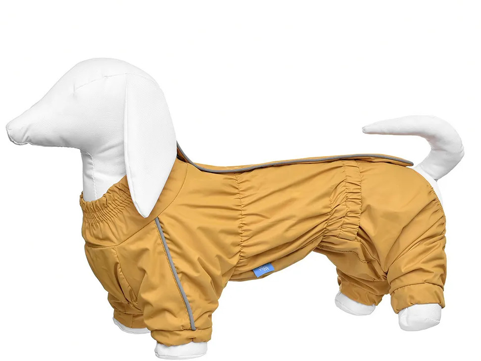 отличный комбинезон 👌для карликовой таксы 35 см по спинке чуть свободный,но на свитер будет самое то👍 хорошая водоотталкивающая ткань