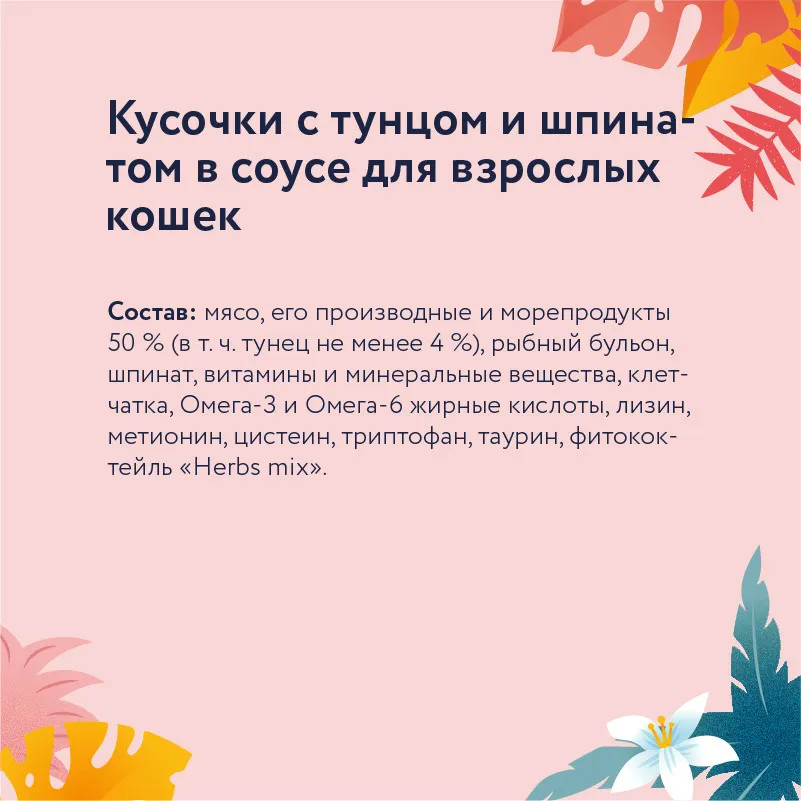 Отзывы «Корм для взрослых кошек «Кусочки с тунцом и шпинатом»»