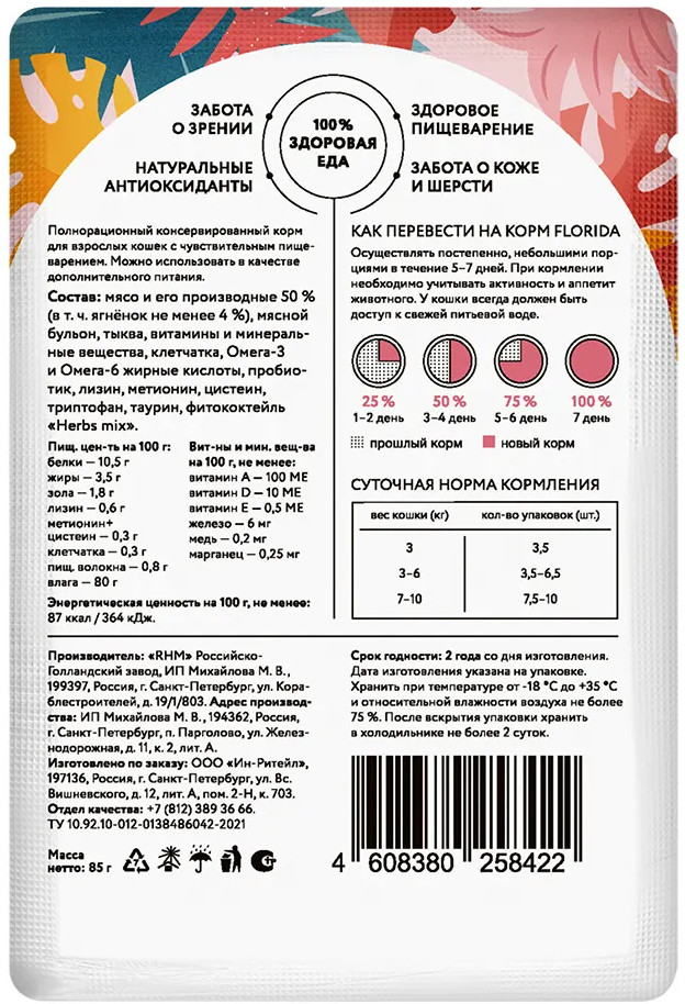 Попробую постепенно переводить на этот корм, следуя рекомендациям на упаковке