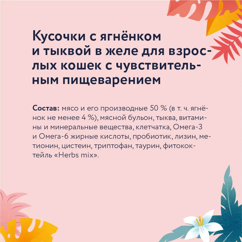 Отзывы «Корм для взрослых кошек с чувствительным пищеварением «Кусочки с ягненком и тыквой»»