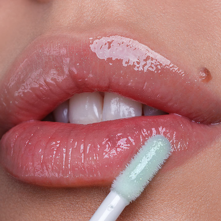 Мятный очень классный, для любителей эффекта холодка на губах отлично. Немного даёт объема на губах. Цвет прозрачный с едва заметным шиммером, текстура не липкая