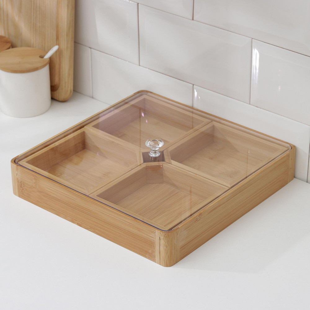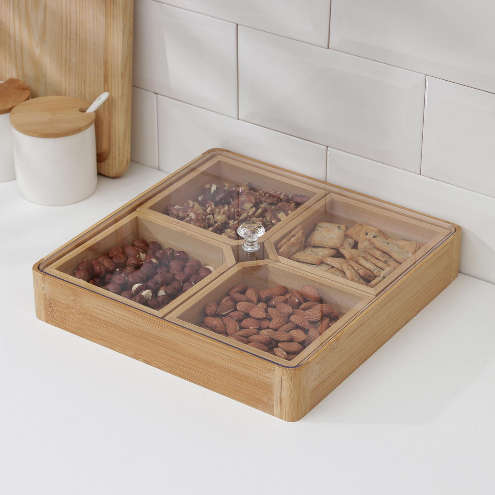 💳 Оплатить за товар можно при получении 🇰🇿 Есть бесплатная доставка по Казахстану от 1 дня 🎁 Копите бонусы с каждой покупки Серия: Striata Менажница выполнена из бамбука. Имеет 4 секции, поэтому подходит для сервировки сразу нескольких закусок. Оригинальный дизайн менажницы идеально впишется в интерьер Вашей кухни, а также отлично подойдёт для кафе, бара, ресторана. Такая менажница станет прекрасным подарком для родных и друзей! |