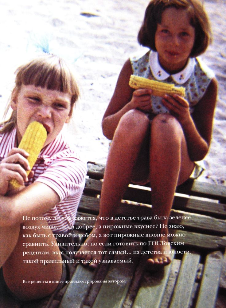 Собственно, выбирая эту книгу, для покупки, меня подкупило магическое слово ГОСТ:) и я ни сколько не пожалела о своём выборе. Большая красивая обложка, твердый переплет, внутри бумага мелованная, цветные подробные иллюстрации к каждому рецепту и описание о том откуда и как возник данный рецепт. Также присутствуют личные фотографии автора прошлых лет и небольшие заметки к ним. Рецепты все выверены до миллиграмма. Целая глава посвящена мороженному, оказывается так просто порадовать домашних свежим и натуральным пломбиром! Кстати, мой торт был съеден за считанные минуты))