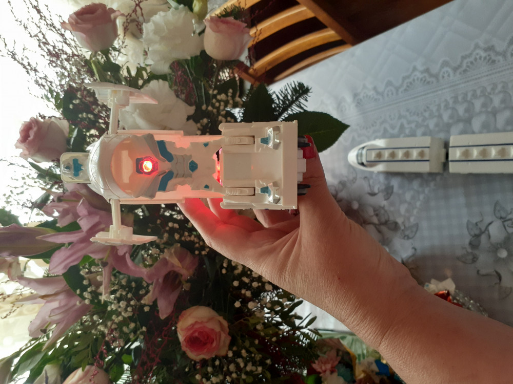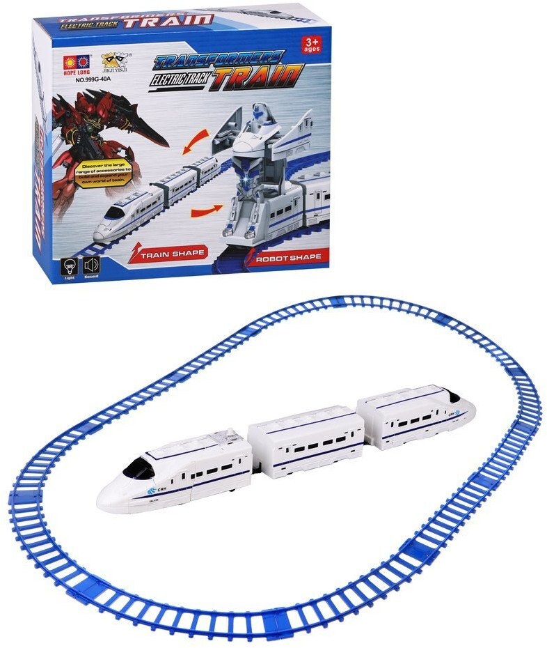 Игрушка понравилась, выполнена качественно, электровоз и вагон гладкие, между собой крепятся на крючки, детали подогнаны идеально. Состав движется быстро. Трансформер соответствует описанию и фото. Железная дорога собирается в форме овала, тоже качественно выполнена, рельсы не распадаются, крепления надёжные, можно брать и переносить целиком. Музыка и сигналы , как всегда громкие.