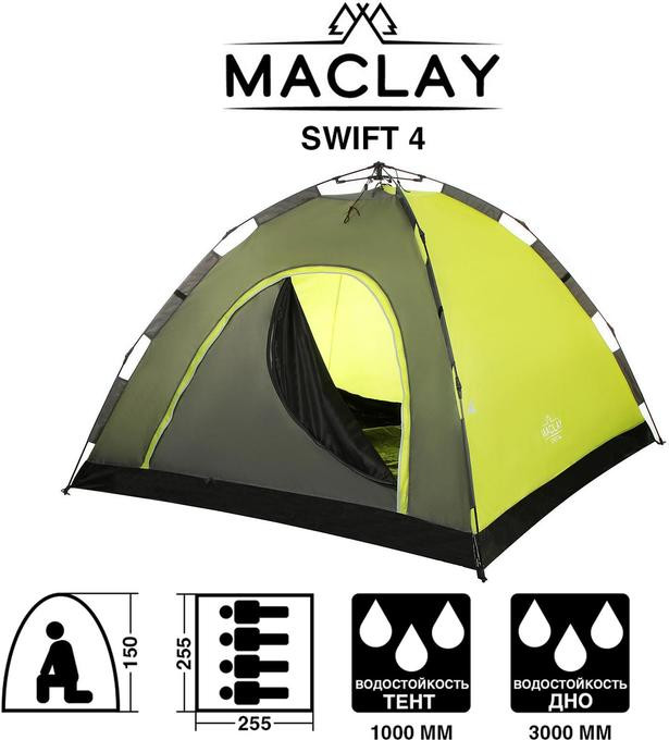 Maclay Палатка-автомат туристическая «Swift 4»В данный момент этот товар отсутствует в продаже. Возможно, у нас найдется аналогичный или похожий товар здесь. Палатка подходит для комфортного размещения 4 человек. |