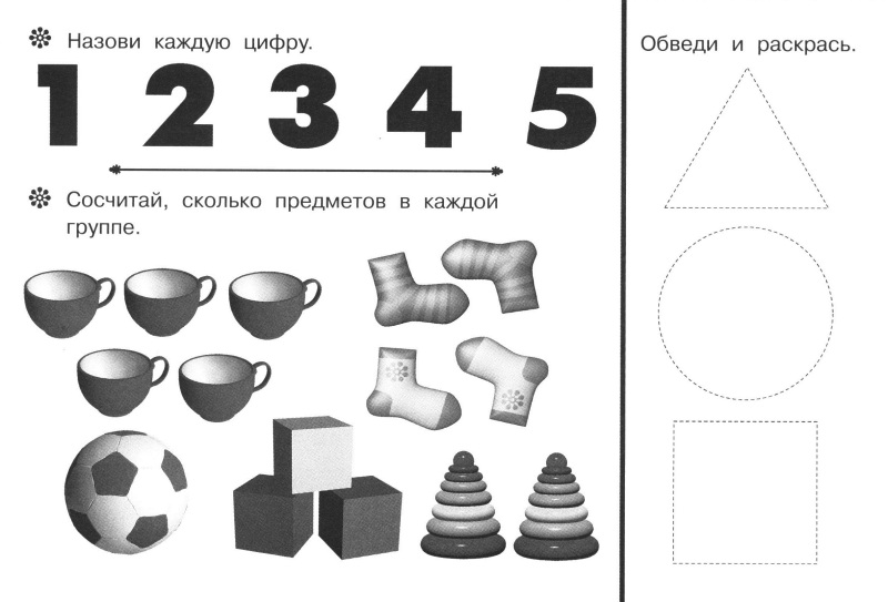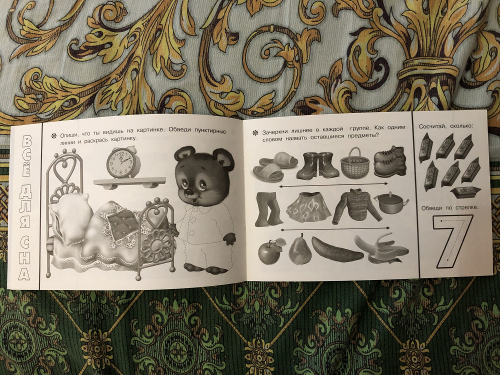 Книжка правда не красочная, в черно-белом формате, но нам понравилась, можно и цифру обвести и найти лишние предметы, в общем хорошо.