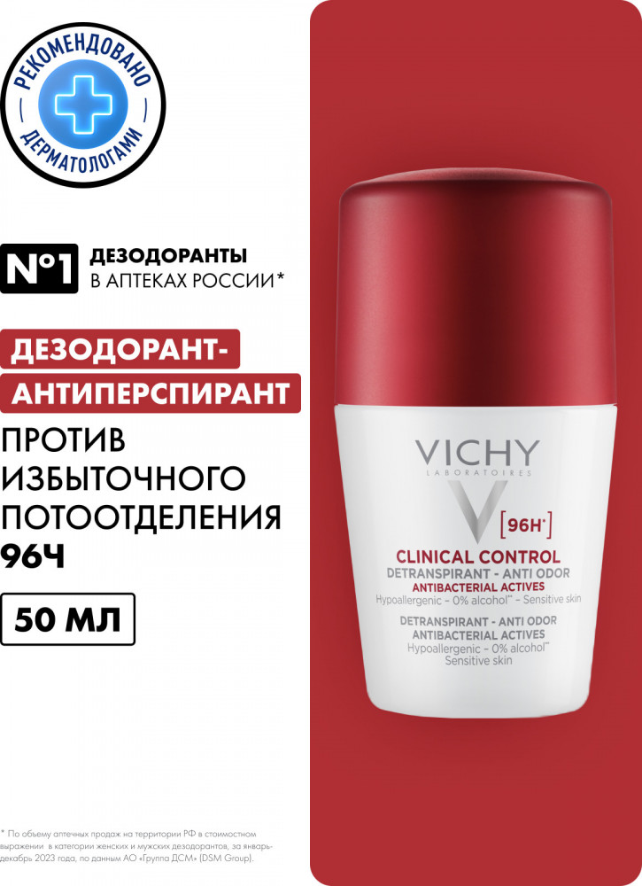 Vichy CLINICAL CONTROL Дезодорант-антиперспирант-15% +233 эффективность приятный запах экономичный расход