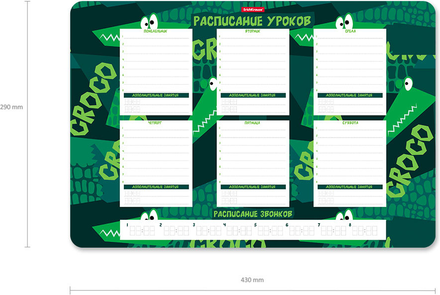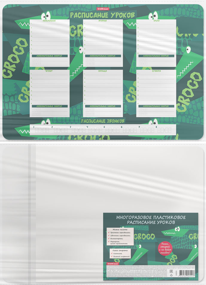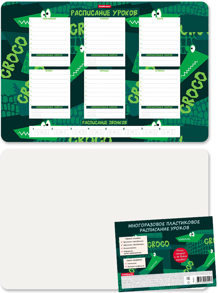 💳 Оплатить за товар можно при получении 🇰🇿 Есть бесплатная доставка по Казахстану от 1 дня 🎁 Копите бонусы с каждой покупки Серия: Real Croco Расписание уроков формата А3 из высококачественного пластика. Поверхность подходит для многократного написания простыми и цветными карандашами, фломастерами, любыми не перманентными маркерами. Толщина пластика — 0.4 мм. Шестидневная учебная неделя, каждый день содержит строки для записи. На расписаниях уроков формата А3 кроме того есть поле для расписания звонков и строки для дополнительных занятий. Упаковка — индивидуальный пакет. |