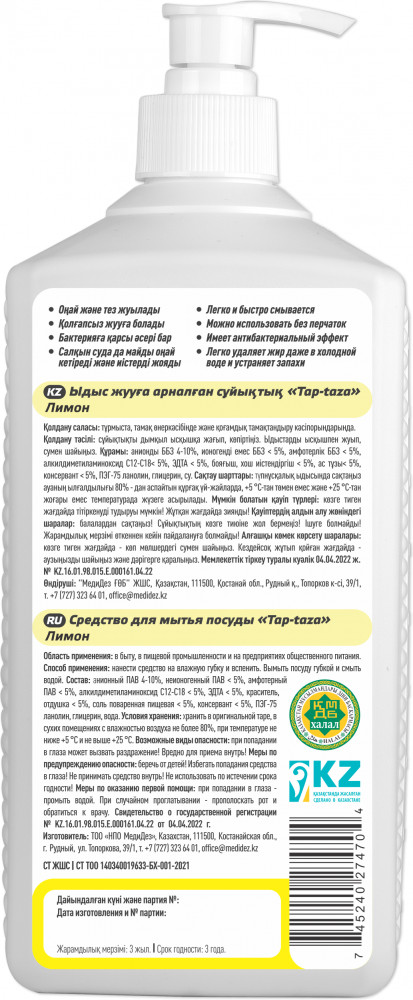 Хорошее моющее средство, запаха лёгкий, не навязчивый, смывается хорошо, посуда не пахнет моющим средством... Моющее средство отечественного товаропроизводителя как для дома, так и для промышленного производства ... Спасибо за хорошее средство для мытья посуды
