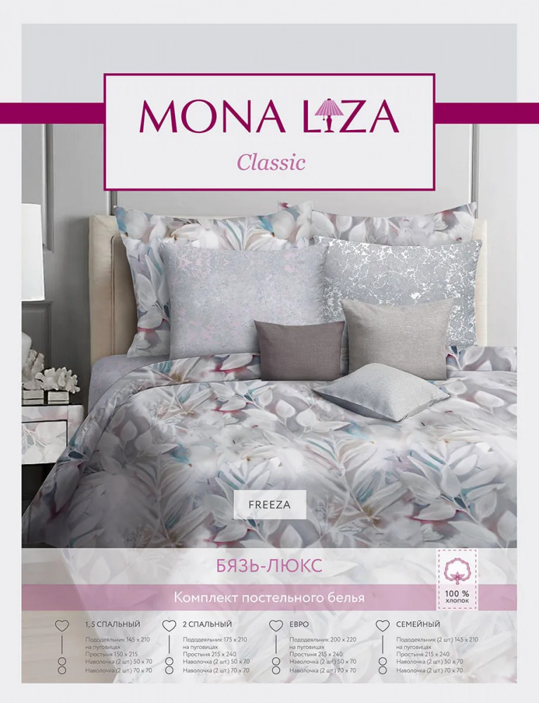 Mona Liza Комплект постельного бельяВ данный момент этот товар отсутствует в продаже. Возможно, у нас найдется аналогичный или похожий товар здесь. Серия: Freeza Комплект постельного белья создан из ткани бязь — гипоаллергенного, экологичного, высококачественного, крупнозакрученного волокна, благодаря чему эта ткань мягкая, нежная на ощупь и очень прочная, не образует катышков на поверхности. При соблюдении рекомендаций по уходу, это белье выдерживает много стирок (более 70), не линяет и не теряет свою первоначальную прочность. |