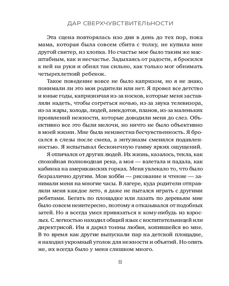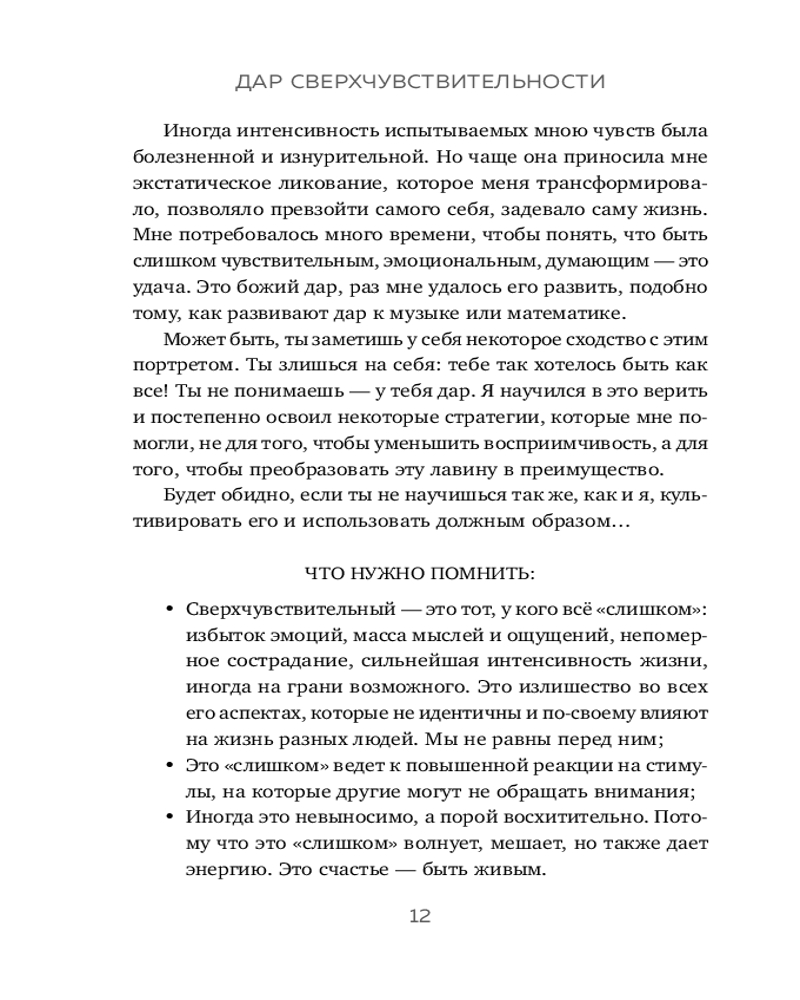 В своей книге он рассказывает про то, кто такие сверхчувствительные, а также предлагает 34 упражнения, которые помогут превратить высокую восприимчивость в настоящую суперсилу.