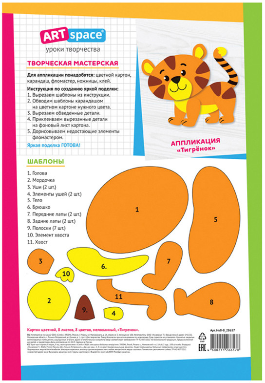 ArtSpace Картон цветной «Тигренок»-20% +18
