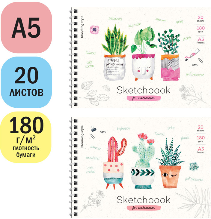 ArtSpace Скетчбук для акварели «Cute plants»В данный момент этот товар отсутствует в продаже. Возможно, у нас найдется аналогичный или похожий товар здесь. Скетчбук-блокнот для акварели «ArtSpace» состоит из 20 листов. Он отлично подойдет для набросков, эскизов и зарисовок в различных техниках рисования: акварелью, карандашом, сангиной, соусом, углем, пастелью и тушью. Блокнот состоит из рисовальной бумаги белого цвета плотностью 180г/м2. Пружина слева и основание из жесткого картона служат для удобства рисования. Стильная обложка из картона белого цвета с милым рисунком. |