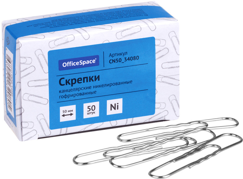 Никелированные гофрированные канцелярские скрепки овальной формы. Отличный инструмент для работы с документами, не пачкают и не деформируют бумагу, не ржавеют, надежно скрепляют документы. |