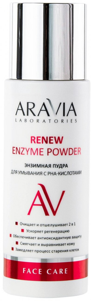 Aravia Пудра для умывания энзимная с РНА-кислотами «Renew Enzyme Powder»В данный момент этот товар отсутствует в продаже. Возможно, у нас найдется аналогичный или похожий товар здесь. Обновляющая энзимная пудра для глубокого очищения и борьбы с возрастными изменениями кожи. Микрочастицы пудры при контакте с водой превращаются в легкую воздушную пенку, очищая поры, остатки макияжа и излишки кожного сала. Энзимы папайи отшелушивают ороговевшие клетки эпидермиса, растворяют белковые загрязнения, способствуют ускоренному клеточному обновлению. Органичная коже глюконовая РНА-кислота обладает высокой антиоксидантной активностью, ускоряет регенерацию, повышает эластичность кожи, предотвращает появление морщин. Пудра усиливает действие дальнейшего ухода, выравнивает микрорельеф, оставляет ощущение мягкой и бархатистой кожи. |