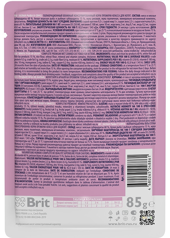 Brit Корм для котят с белой рыбой в соусе-25% +5 вкус удовольствие качество