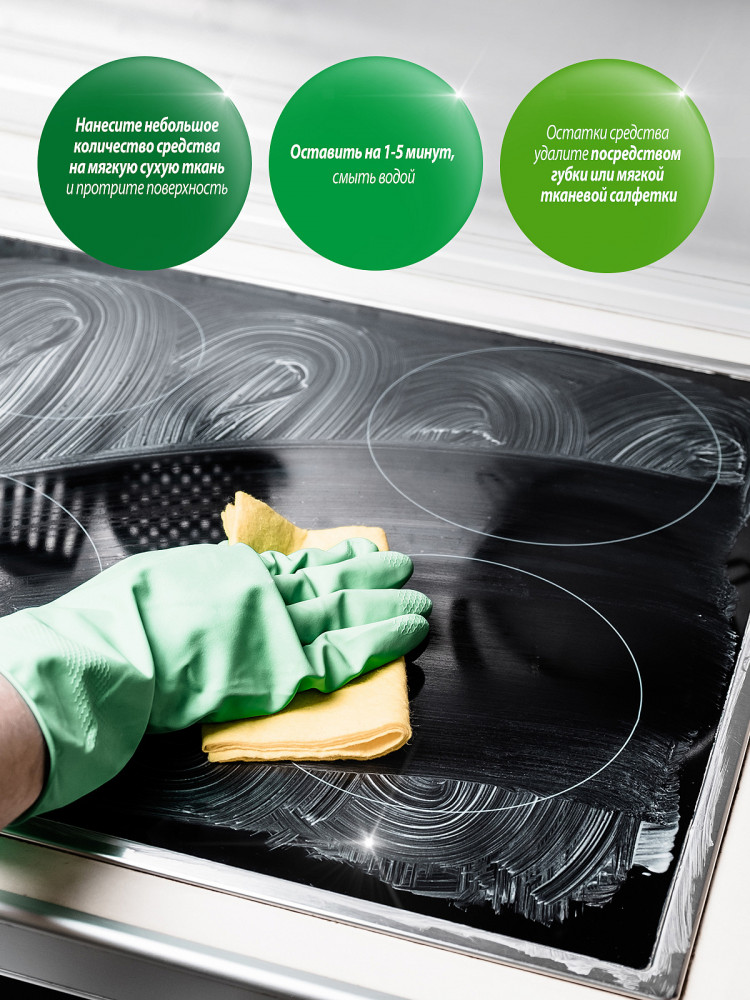 💳 Оплатить за товар можно при получении 🇰🇿 Есть бесплатная доставка по Казахстану от 1 дня 🎁 Копите бонусы с каждой покупки Средство предназначено для удаления застарелого жира, а также пригоревших остатков пищи. В процессе очистки на поверхности образуется тонкая пленка, которая обеспечивает отсутствие разводов, блеск и значительно облегчает последующий уход. Средство предназначено для применения как со стеклокерамическими плитами, так и с индукционными и керамическими. Гелевая консистенция не требует предварительного замачивания и обеспечивает быстрое проникновение вглубь застывших капель жира, пригоревшей пищи и других устойчивых загрязнений. При необходимости средство можно оставить на поверхности плиты на несколько минут. Для наилучшего результата рекомендуется использовать мягкую салфетку без ворса и очищать панель только после ее полного остывания. |