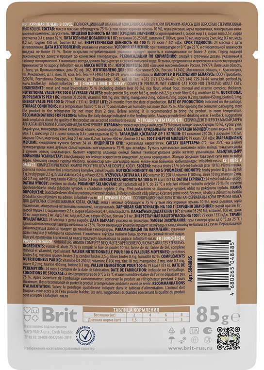 Brit Корм для для взрослых стерилизованных кошек с куриной печенью