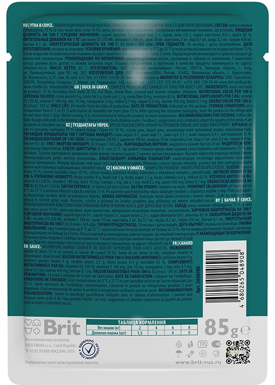 Brit Корм для взрослых кошек с уткой в соусе