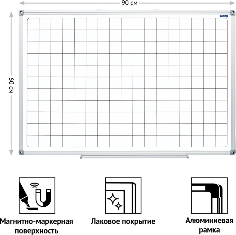 OfficeSpace Доска магнитно-маркернаяВ данный момент этот товар отсутствует в продаже. Возможно, у нас найдется аналогичный или похожий товар здесь. Магнитно-маркерная доска OfficeSpace в клетку идеально подойдёт для проведения тренингов, совещаний и презентаций. Белое лаковое покрытие предназначено для письма специальными маркерами. Металлическая поверхность также позволяет размещать объявления при помощи магнитов. Алюминиевая рамка с укреплёнными пластиковыми уголками гарантирует прочность конструкции и длительный срок службы. Предусмотрена возможность как горизонтального, так и вертикального монтажа доски на поверхности. |