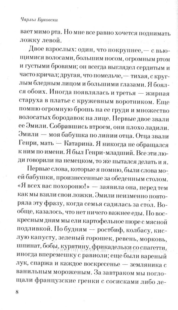 Прочитала практически все книги Буковски, эта - самая трогательная для меня, и по сравнению с остальными его книгами, здесь гораздо меньше матов и всего того, за что Буковски критикуют.