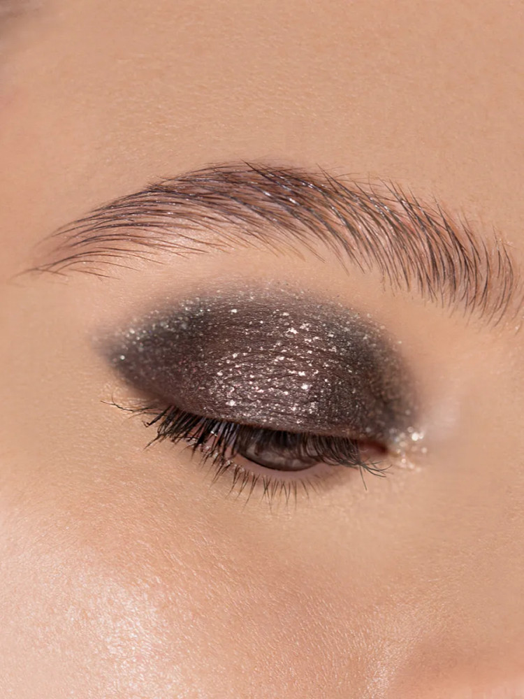 Хорошие тени за приятную цену. Красивый оттенок, соответствует названию. Черный с серебристыми блёстками.