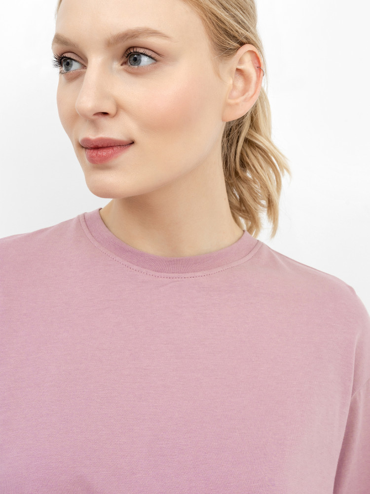Очень нежная ткань, приятная к телу. Но большемерит, надо было брать 50 разм. Хотя, сейчас модно носить широкое.