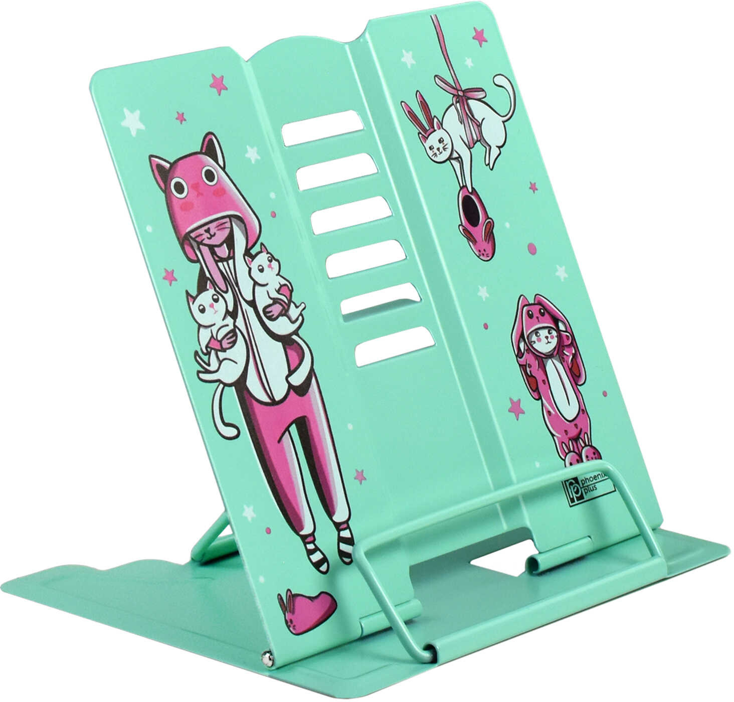Феникс + Подставка для книгВ данный момент этот товар отсутствует в продаже. Возможно, у нас найдется аналогичный или похожий товар здесь. Серия: Зайка в кигуруми Подставка для книг — незаменимая вещь для любого ученика. Металлическая подставка для книг с пластиковым упором, имеет несколько углов наклона. Идеально подходит для школьников, предназначена для детского письменного стола. Такое простое и неброское изделие позволит ребёнку удобно располагать книги, тетради и журналы в процессе чтения, а также сохранит порядок на рабочем месте. |