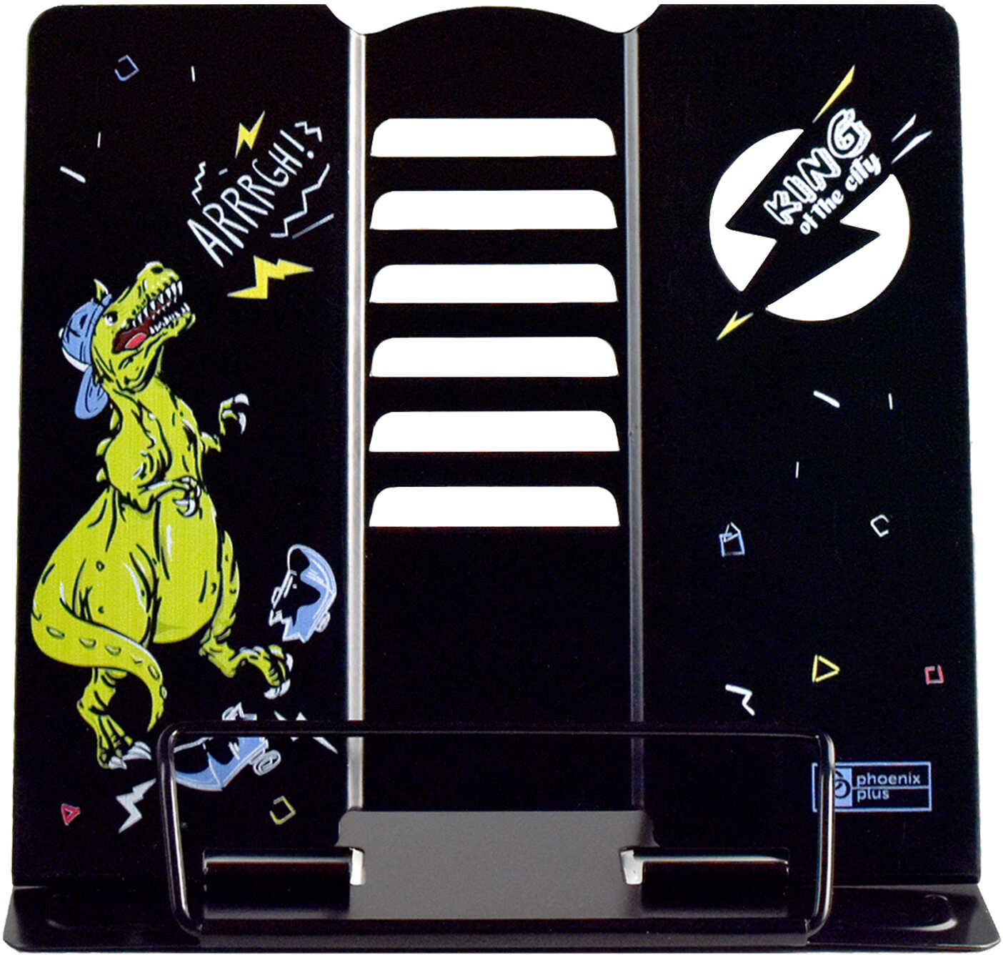 Феникс + Подставка для книг «Злой Дино»В данный момент этот товар отсутствует в продаже. Возможно, у нас найдется аналогичный или похожий товар здесь. Подставка для книг — незаменимая вещь для любого ученика. Металлическая подставка для книг с пластиковым упором, имеет несколько углов наклона. Идеально подходит для школьников, предназначена для детского письменного стола. Такое простое и неброское изделие позволит ребёнку удобно располагать книги, тетради и журналы в процессе чтения, а также сохранит порядок на рабочем месте. |