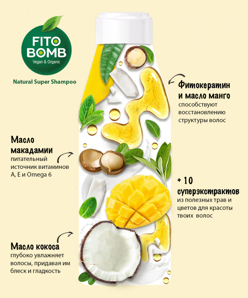 Фитокосметик Шампунь для волос восстанавливающий «Natural super shampoo»