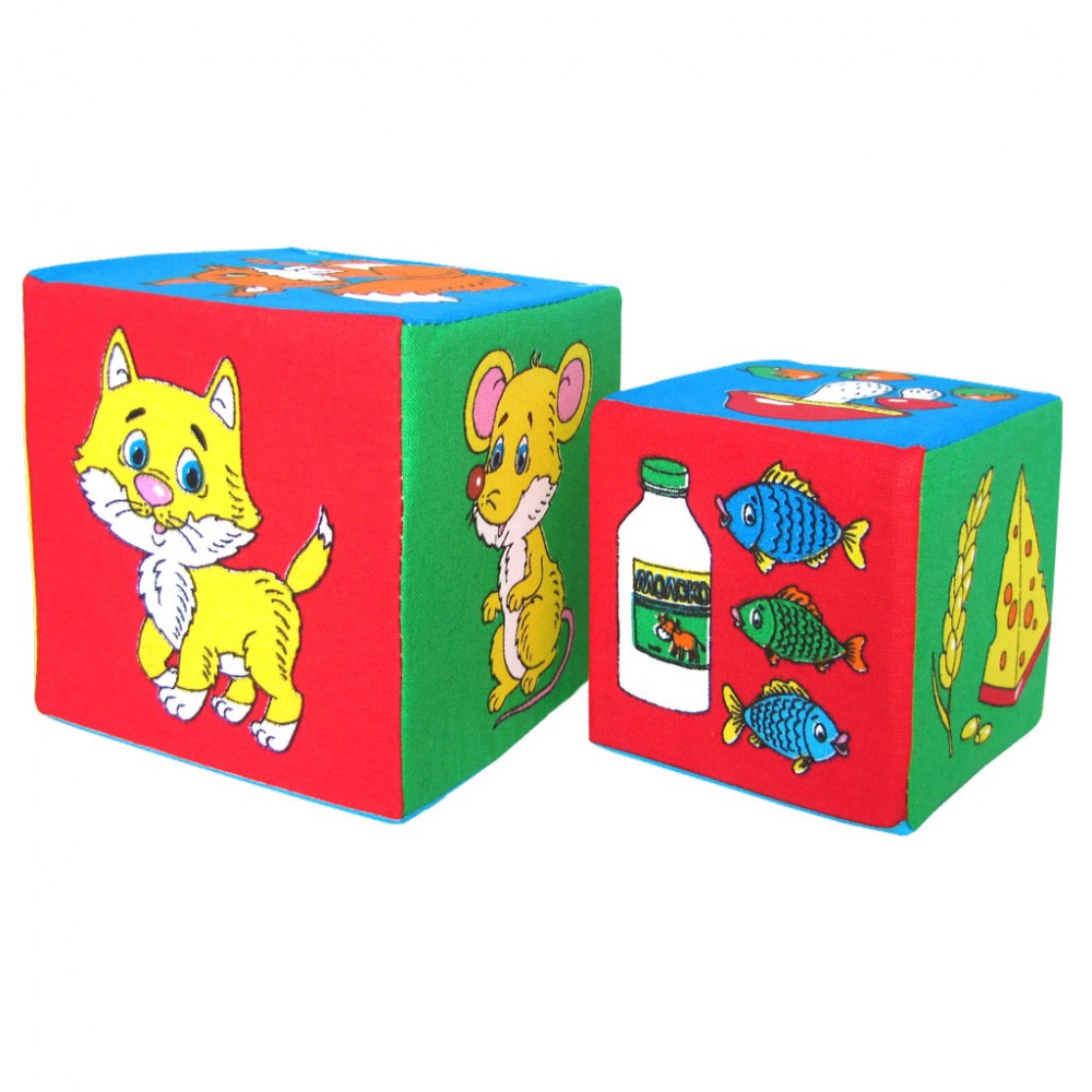 Кубики классные, ничем ни пахнут, при стирке не деформируются, очень мягкие, цвета яркие. Животные и лакомства изображены на одинаковых фоновых цветах. Ребенку очень понравились.