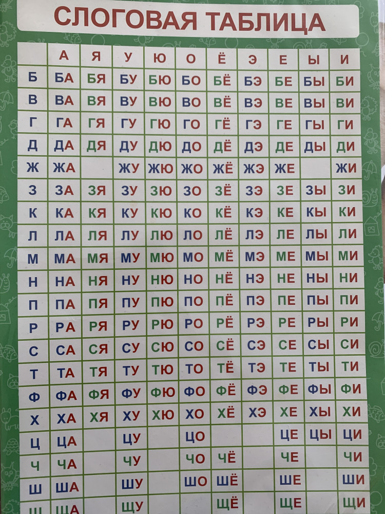 Феникс + Плакат обучающий «Слоговая таблица»удобный формат обучение чтению полезная штука размер A4 плотный картон В данный момент этот товар отсутствует в продаже. Возможно, у нас найдется аналогичный или похожий товар здесь. Слоговые таблицы помогают обогатить содержание урока дополнительным материалом для чтения, расширить круг игровых заданий, сформировать у детей умение читать слоги и слова. Принцип их создания довольно прост: в верхней строке таблицы размещены гласные, в первом столбике — согласные, а на пересечении горизонтали и вертикали — прямые открытые слоги. Детям дается вся таблица сразу и она должна быть перед глазами, по возможности, весь период обучения чтению. Таблица служит своего рода средством обучения с опережением и помогает детям привыкнуть к графическому облику букв и прямых открытых слогов, быстрее их запомнить. |