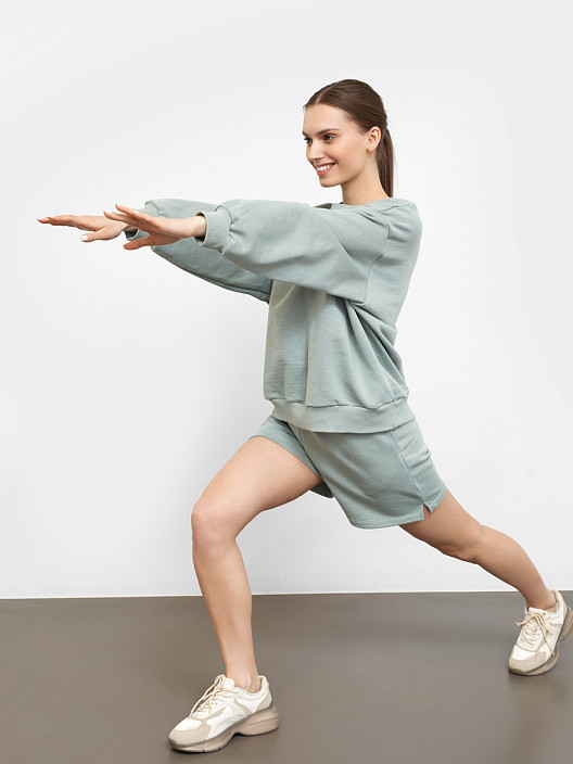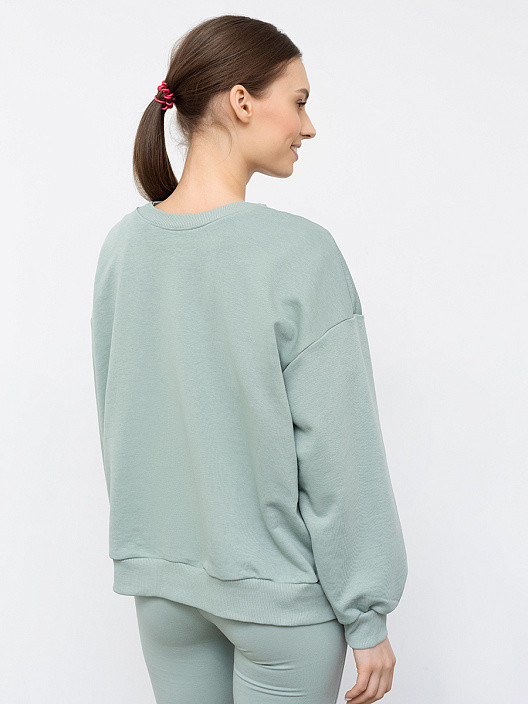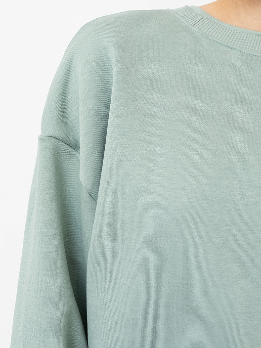 Джемпер свободного силуэта, оверсайз. Изготовлен из футера с начесом. Линия плеча немного спущена, что дарит свободу движений. Горловина круглой формы, рукава длинные и свободные, с манжетами. По нижнему краю джемпера проходит пояс из рибаны. Идеально для спорта, отдыха и жизни!