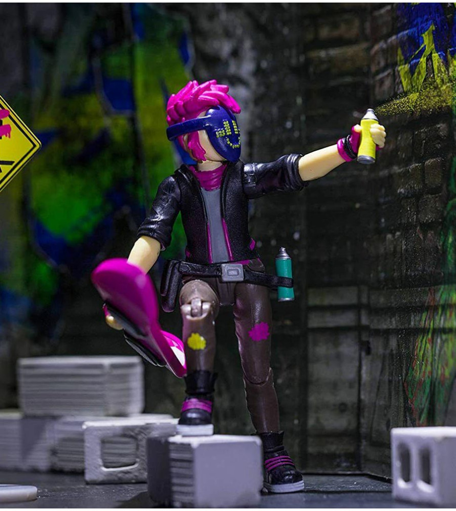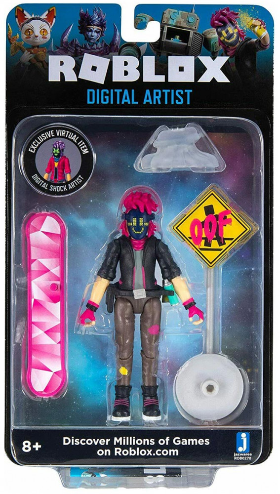 Коллекционная фигурка Digital artist отлично детализирована. Имеет много точек артикуляции, которые позволяют симулировать разные позы игрушки Роблокс. Аксессуары к фигурке Роблокс помогут усилить впечатление: баллончик с краской, дорожный знак, скейт, подставка, чтобы установить героя вместе со скейтом.