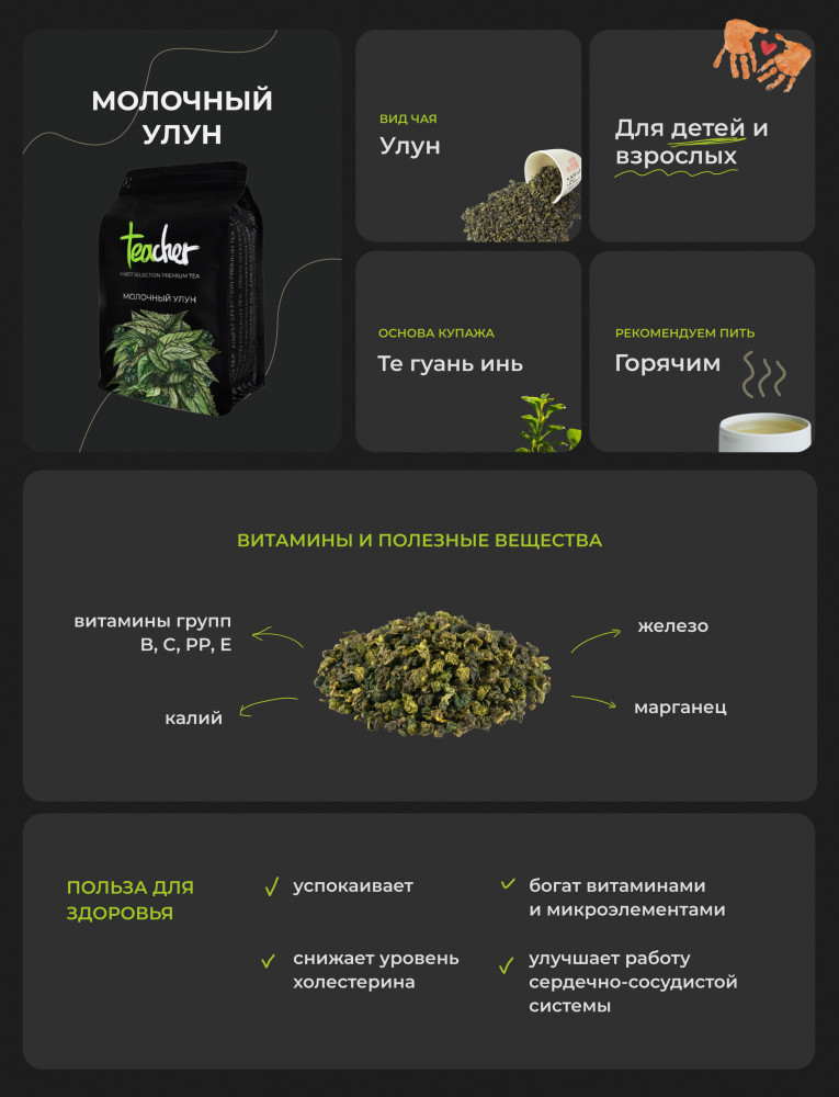 Teacher Чай «Молочный улун»+185 мягкий вкус приятный аромат упаковка