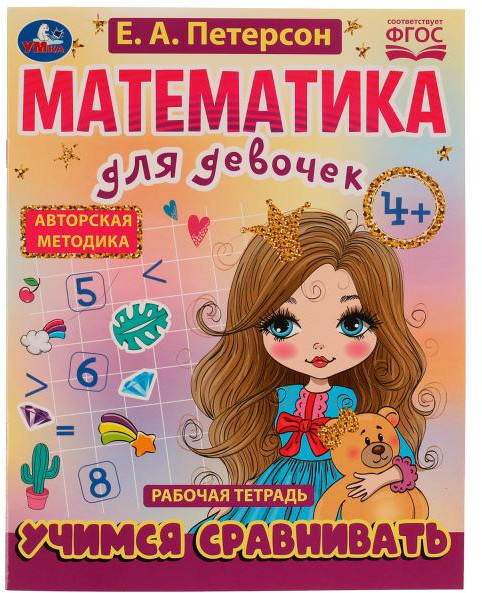 💳 Оплатить за товар можно при получении 🇰🇿 Есть бесплатная доставка по Казахстану от 1 дня 🎁 Копите бонусы с каждой покупки Рабочая тетрадь «Е. А. Петерсон. Учимся сравнивать. 4+» из серии «Математика для девочек» ТМ «УМка» — отличный помощник для маленькой принцессы в освоении новых знаний в области математики: |