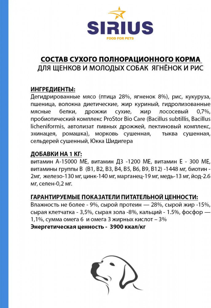 Sirius Корм для щенков и молодых собак «Ягненок и рис»
