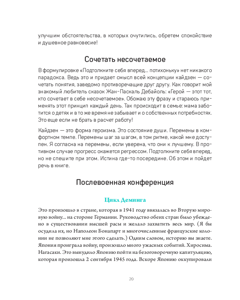 Пустая трата времени и денег.Просто маркетинговый ход назвать книгу популярным словом и продать. Главное кайдзен вообще не имеет отношения к этой книге