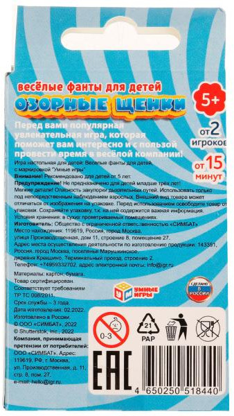 💳 Оплатить за товар можно при получении 🇰🇿 Есть бесплатная доставка по Казахстану от 1 дня 🎁 Копите бонусы с каждой покупки Карточная игра «Весёлые фанты для детей. Озорные щенки» ТМ «Умные игры» — отличный вариант для маленького любознайки увлекательно провести время с друзьями или семьёй. Смысл данной игры заключается в исполнении шуточных заданий, написанных на красочных картонных карточках. Карточки кладутся рубашками вверх, все игроки по очереди берут верхнюю карту из колоды и выполняют фант, указанный на ней. Игра заканчивается, когда в колоде не осталось карт с заданиями. Благодаря компактному размеру, набор можно взять с собой в поездку, чтобы весело скоротать время в дороге. |
