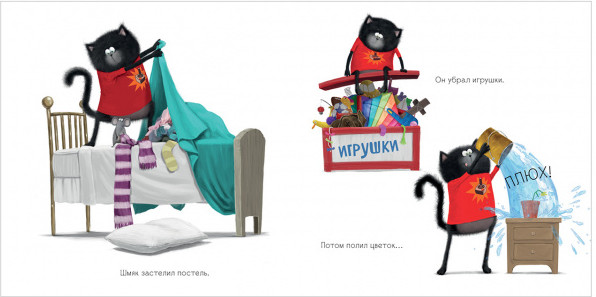 Котенок Шмяк — мамин помощникВ данный момент этот товар отсутствует в продаже. Возможно, у нас найдется аналогичный или похожий товар здесь. Серия: Книжки-картинки (мягкая обложка) Как приучить малыша помогать по дому? Папа котенка Шмяка знает один секрет! На семейном совете было решено, что теперь у Шмяка будет свой список домашних дел. Но... убирать игрушки, застилать постель, поливать цветы — это целая вечность пройдет! «Когда тебе весело, время летит незаметно», — подсказывает папа Шмяку. Убирая игрушки в ящик, Шмяк представил, будто нашел пиратский клад на необитаемом острове, и теперь ему надо сложить все золотые монеты в сундук. Кто бы мог подумать, что уборка может быть такой веселой! |