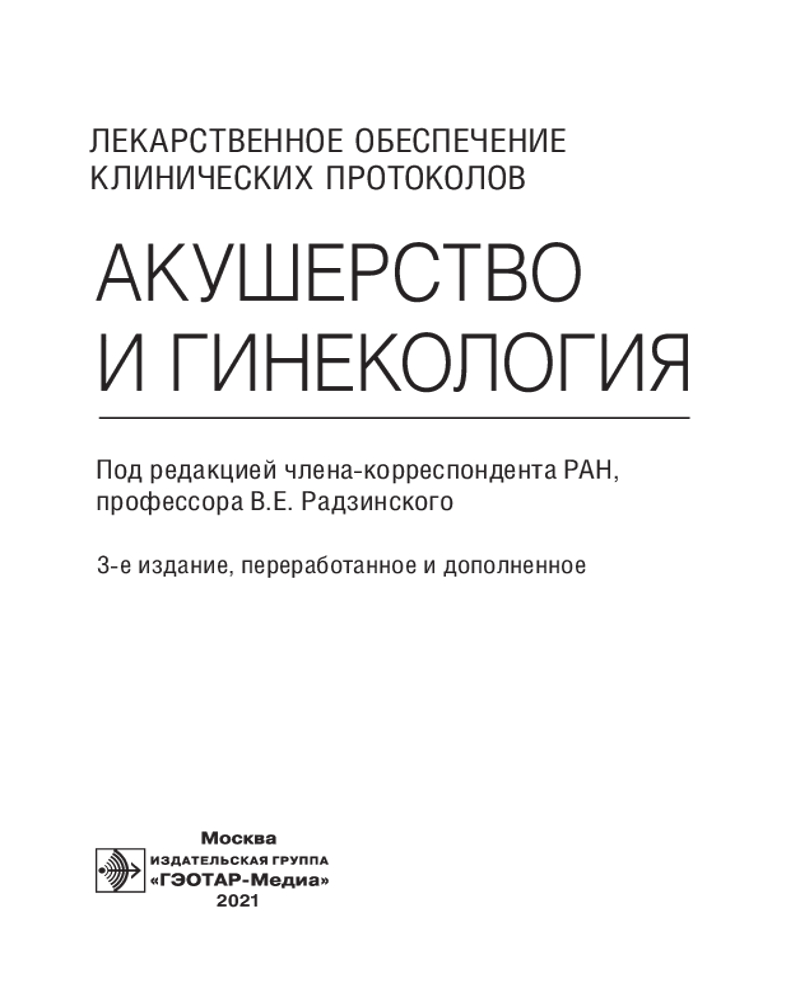 Лекарственное обеспечение клинических протоколов. Акушерство и гинекология+315