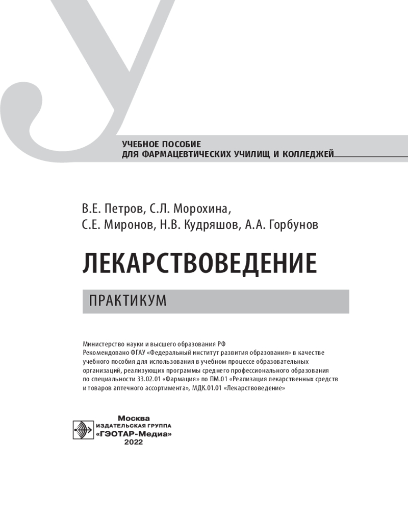 Лекарствоведение. Практикум. Учебное пособиеСергей Евгеньевич Миронов, Светлана Львовна Морохина +499