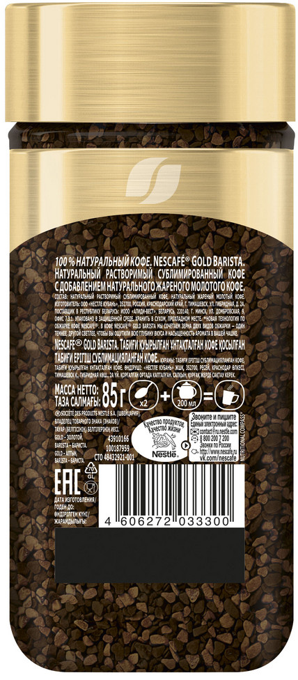 Nescafé Кофе растворимый «Gold Barista»соответствие описанию постоянство В данный момент этот товар отсутствует в продаже. Возможно, у нас найдется аналогичный или похожий товар здесь. Великолепное сочетание зёрен двух видов обжарки — темной и светлой — позволит ощутить всю насыщенность вкуса и аромата в вашей чашке. В этом кофе собрано все самое лучшее. Каждый бариста знает, что разные виды зёрен требуют разной обжарки для раскрытия всей полноты аромата и оттенков вкуса. С помощью особой технологии здесь объединены зёрна тёмной и светлой обжарки. |