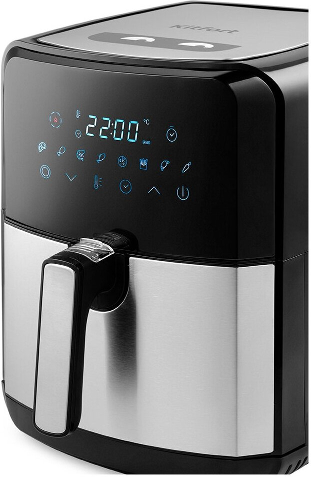 Стильный и компактный аэрогриль Kitfort КТ-2239 может использоваться как аэрогриль, а также как аэрофритюрница, духовка и сушилка и позволяет готовить большинство продуктов с минимальным количеством масла или вовсе без его добавления.
