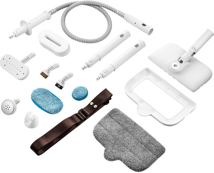 Конструкция «6 в 1» предусматривает: мытье полов, использование ручного модуля с насадками, отпаривание одежды, дезинфекция мягких изделий и ковров, фильтрация используемой воды и обработка паром всех доступных поверхностей.